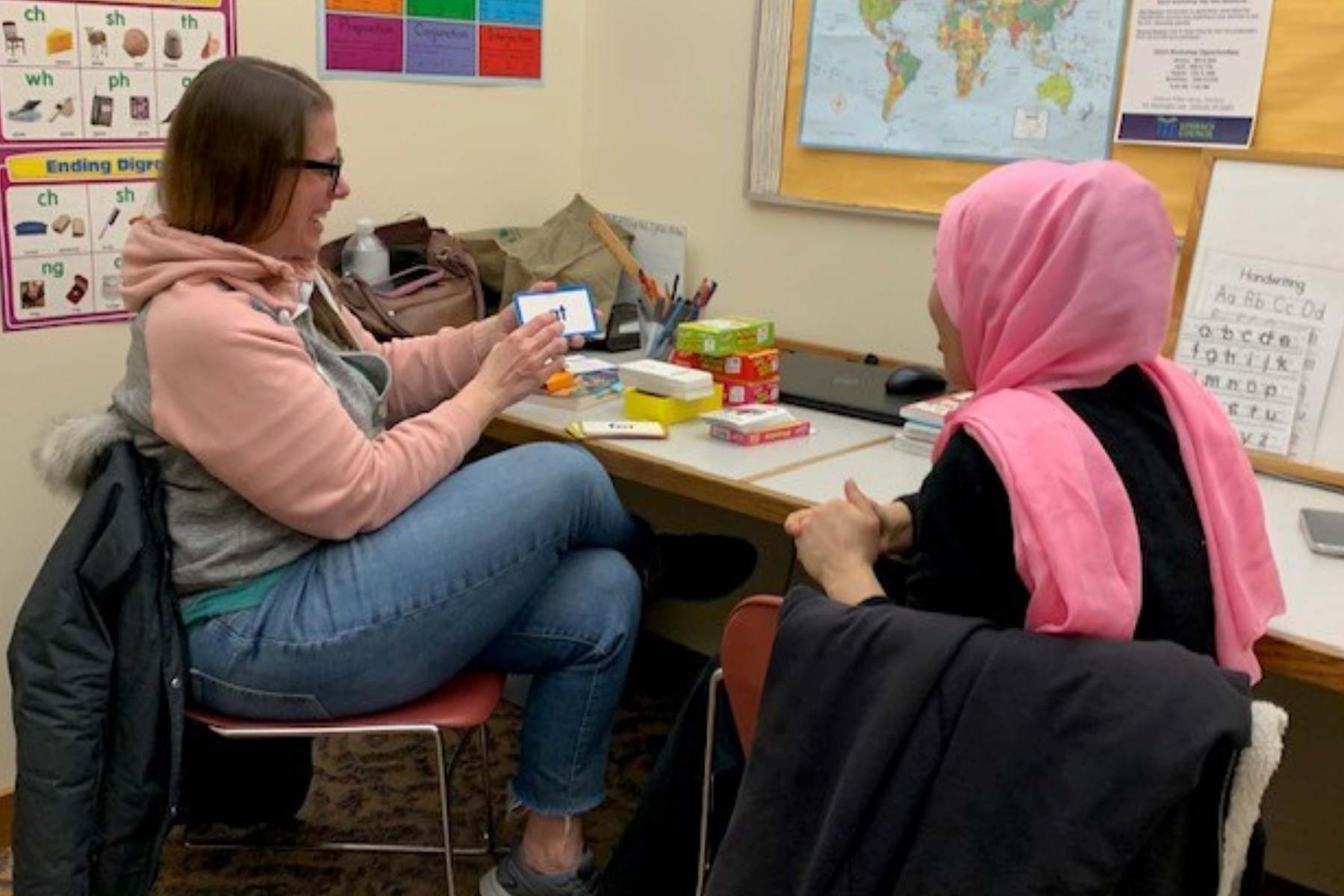 The One-to-One Tutoring program connects adult learners with volunteer tutors for individualized English lessons.