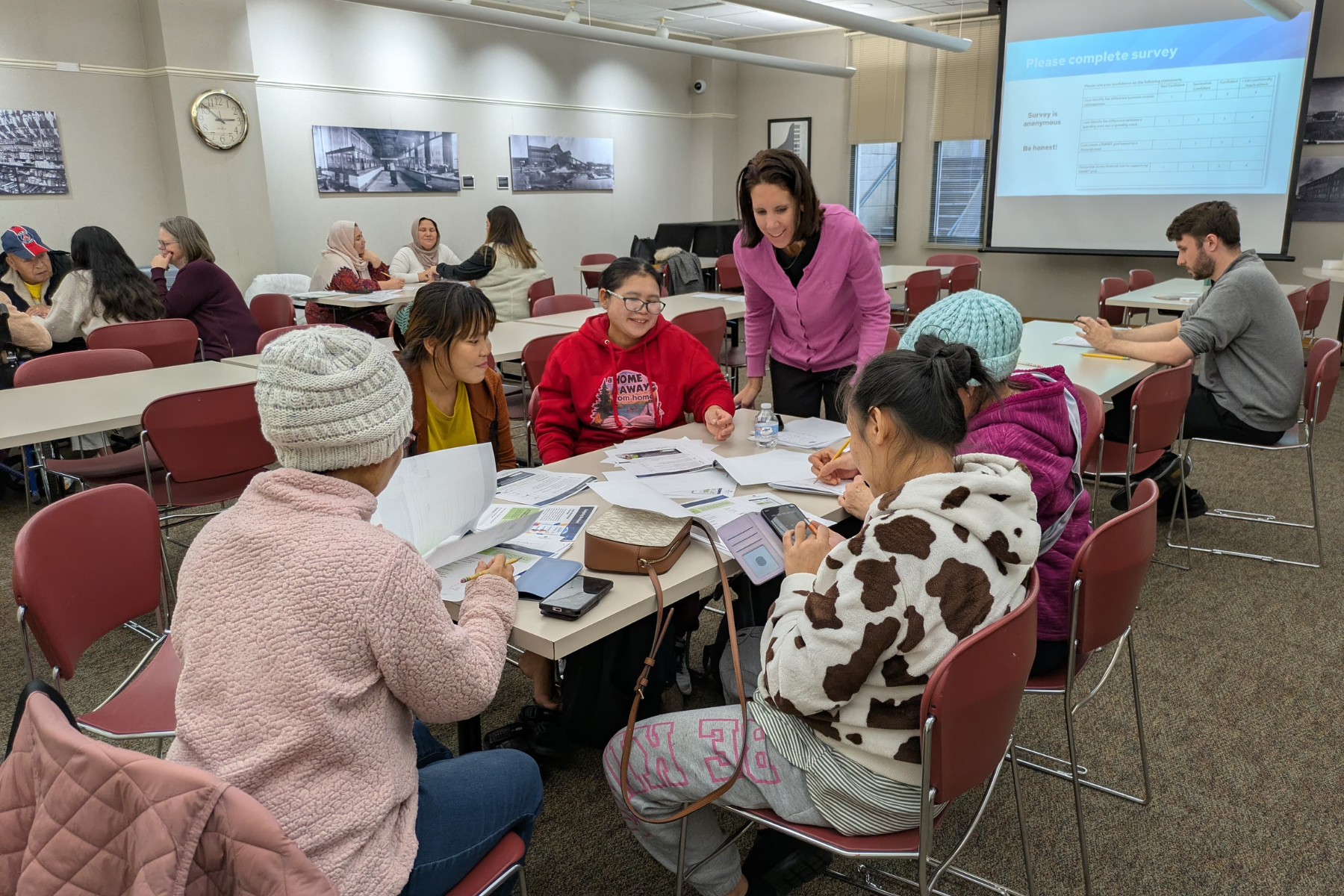 Classes focus on practical language for daily life, family, and community involvement – integrating conversational English, American customs, and topics that reflect the interests of women in the group.